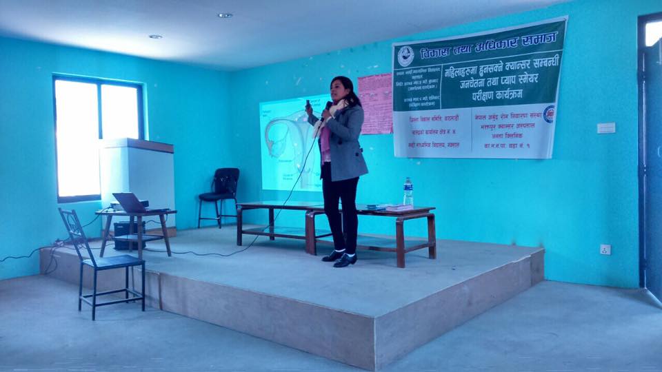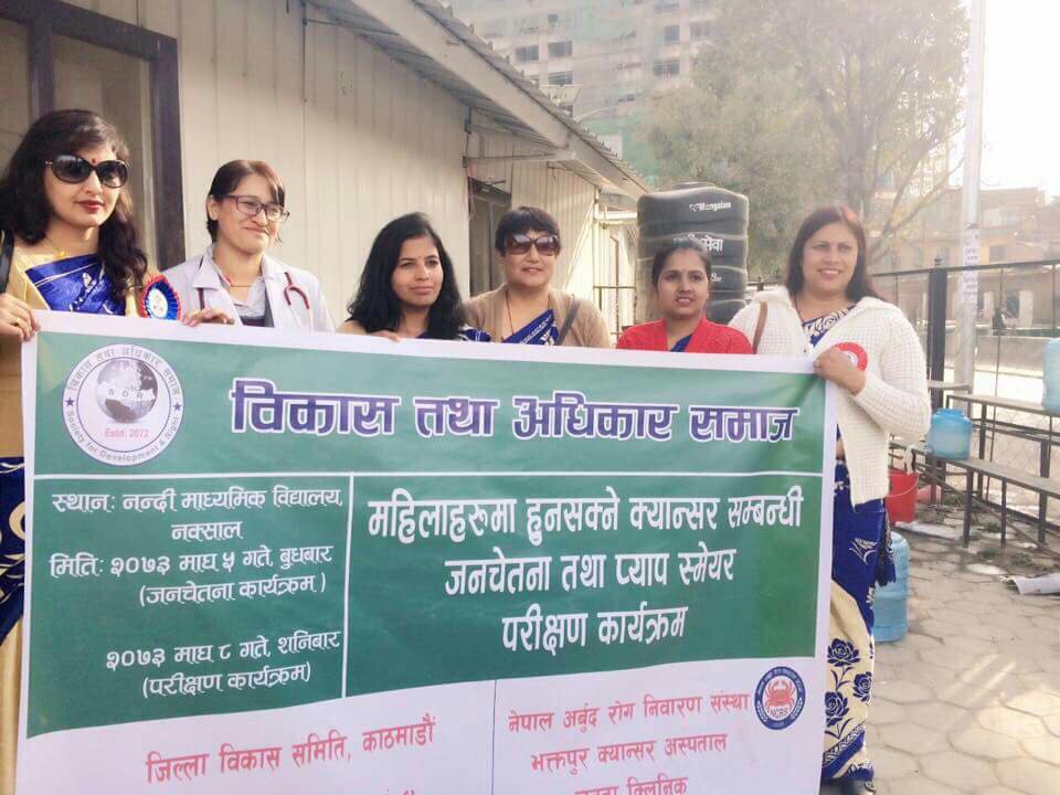 Nepal Cancer Relief Society and Bhaktapur Cancer Hospital in association with Bikas Adhikar Samaj organized Cervical Cancer Screening Camp at Naxal on 8th of Magh, 2073 for the women around that area. Health Minister, Mr. Gagan Thapa showed his valuable presence and delivered few words regarding women and reproductive health. The camp was conducted under the supervision of Dr. Usha Bade.