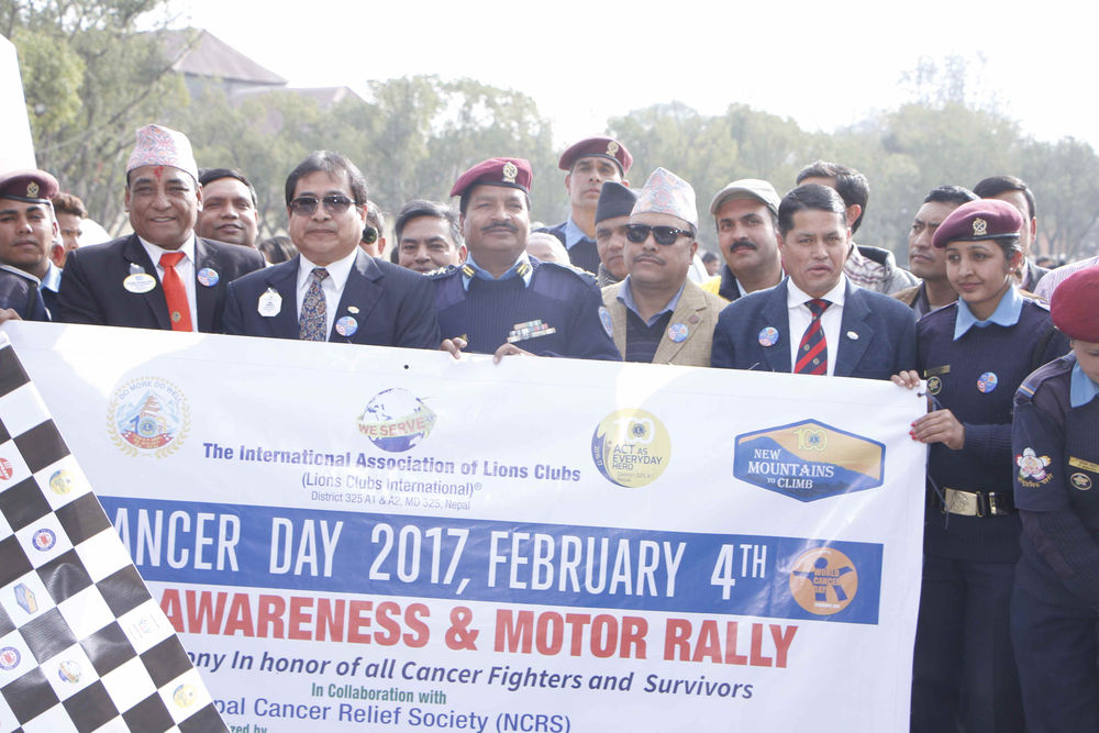 On the occasion of World Cancer Day, 2017 with the theme of "We Can, I Can 2016-2018" Nepal Cancer Relief Society (NCRS) in association with "Lions Club International, District 325 A1 and A2" proudly to organized Mass Motor Rally on 4th of February, Saturday (22nd of Magh, 2073). The rally started from from Bhrikutimandap and ended at Bhaktapur Cancer Hospital. The motor rally was then preceded towards Nyatapol Temple where c6ultural program and candle light ceremony was fruitfully accomplished.