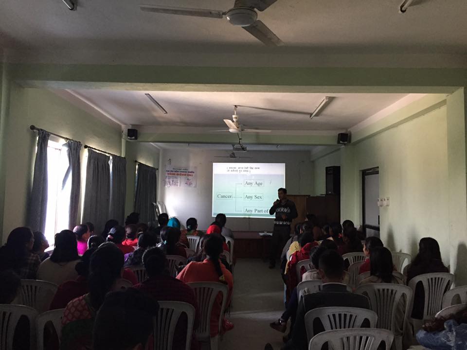 NCRS provided Breast and Cervical Cancer Awareness Program at Jaya Multiple College, Makalbari on the month of Falgun to huge number of female around that area. The participants interacted with two of the renowned oncologists from Bhaktapur Cancer Hospital in which Dr. Ujjwal Chalise facilitated session on General Cancer whereas Dr. Sunita Dhanchha facilitated Breast and Cervical Cancer session.