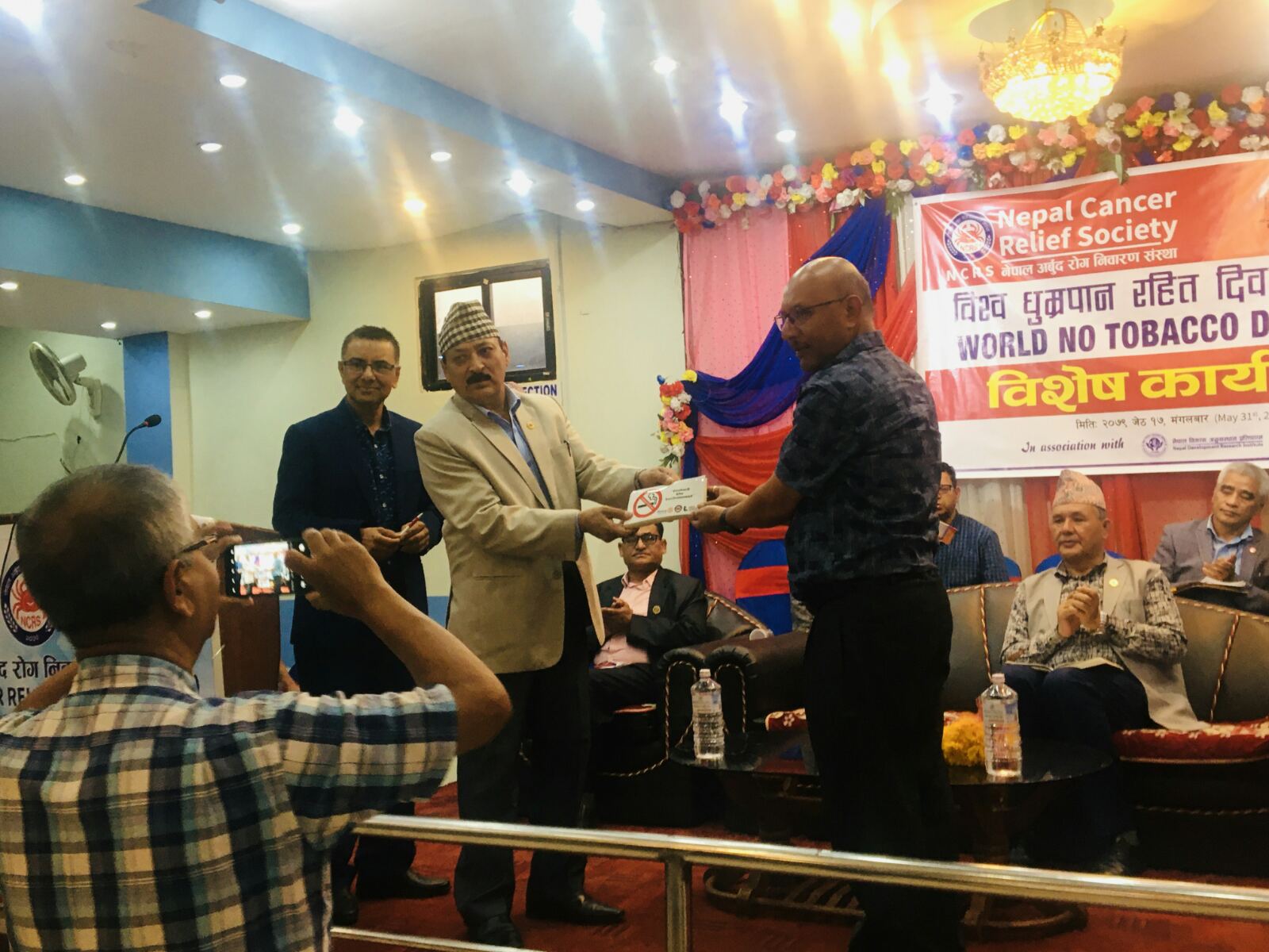 प्रमुख अतिथी माननिय स्वास्थ्य राज्यमन्त्री भवानी प्रसाद खापुगं ज्युले क्यान्सर जस्ता नसर्ने रोग ले समस्या पार्दै ल्याएको र नेपालमा बर्षेनी क्यान्सर रोगी थपिईरहेको अबस्थामा धुम्रपान बुरुद्वको सचेतना अभिबृद्वि आबश्यक रहेको संकेत गर्नु हुदै यस सॅस्थाको क्यान्सर बिरुद्वको कार्यको प्रसंसा गर्नु हुदै अब धुम्रपान बिरुद्वको अभियानमा सरकार संग सहकार्य गरेर गर्न आग्रह गर्नु भएको थियो ।