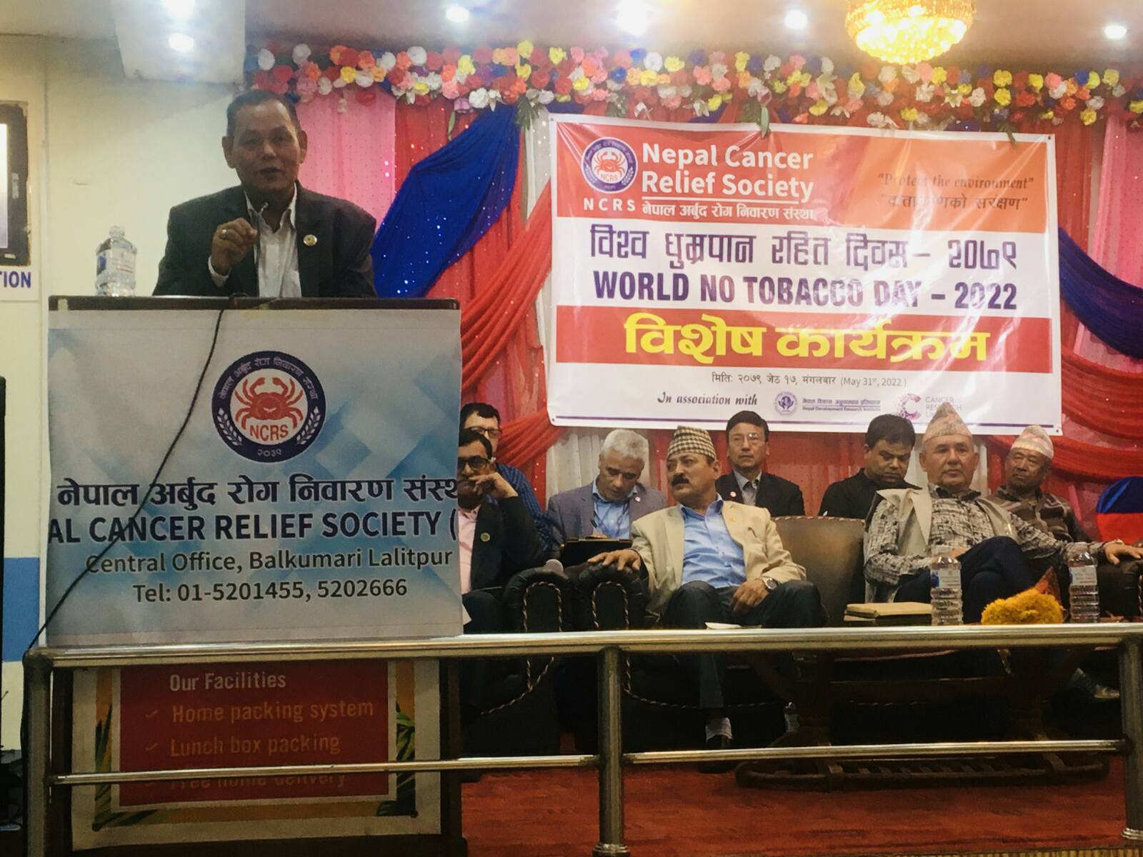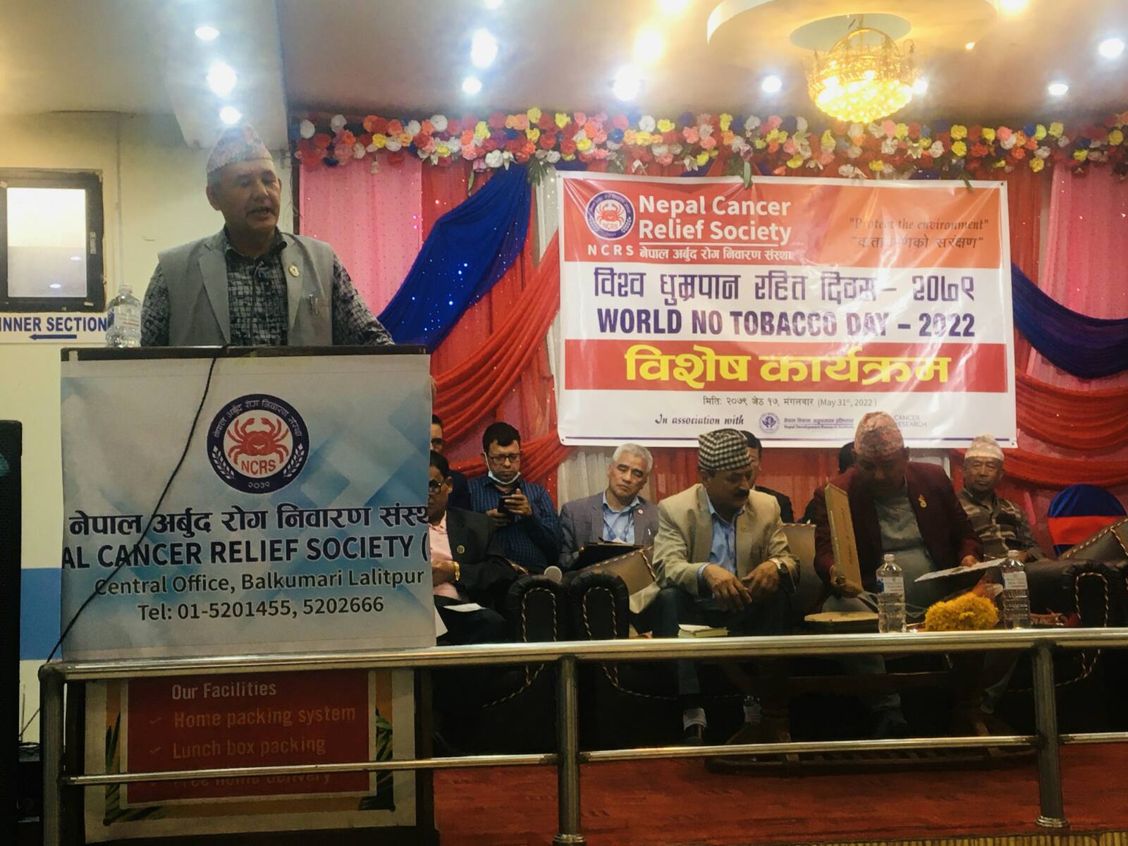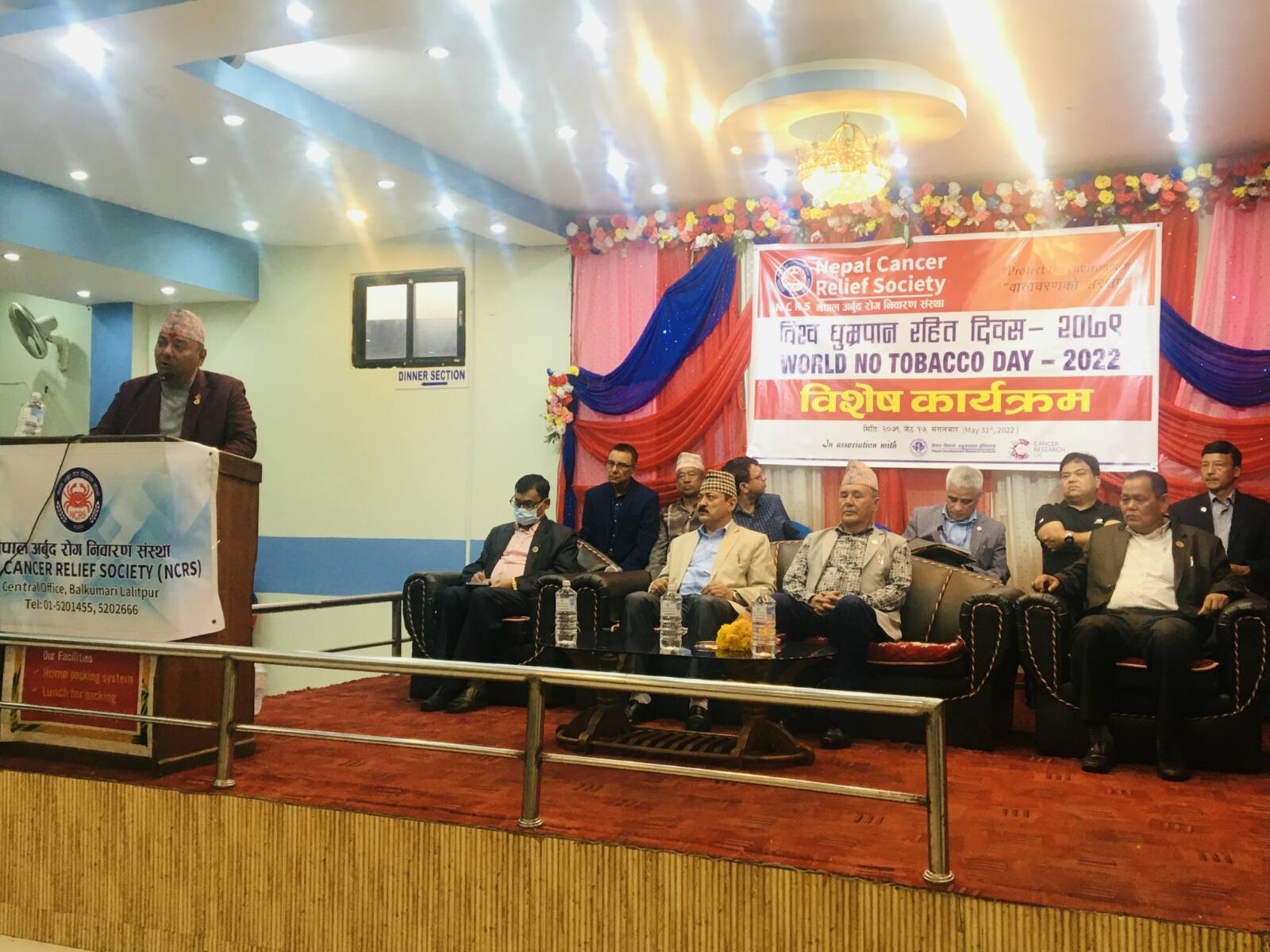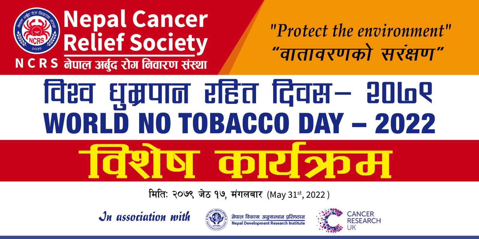 नेपाल अर्बुद्व रोग निबारण संस्था NCRS केन्दिय कार्यालयले ३१ मे २०२२ का दिन एक समारोहका बिच काठमाण्डौमा बाताबरणको संरक्षणको थिममा बिश्ब धुम्रपान रहित दिबश कार्यक्रम सम्पन्न गरेको छ ।