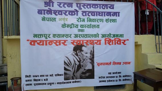 On 7th February, 2015 / 24th Magh, 2071 B.S., Nepal Cancer Relief Society (NCRS) organized General Cancer, Breast Cancer and Cervical Cancer Screening Camps in Mahadevsthan, Baneshwor in collaboration with Mahakavi Devkota Arbud Rog Sachetana Samiti and with technical support from NCRS Bhaktapur Cancer Hospital . The camps started at 9 A.M. and had around 100 participants.