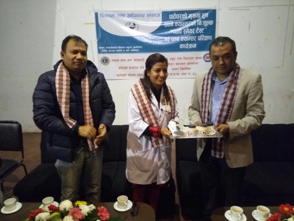 Nepal Cancer Relief Society and Bhaktapur Cancer Hospital in association with Bikas Adhikar Samaj successfully organized a Pap Smear Camp at Maitidevi on 4th of Mangsir, 2073 (19th of October, 2016) and 11th of Mangsir, 2073 (26th October, 2016) . A huge number of participants successfully had their check up. The Cervical Cancer Screening Camp was done in the premises of Galaxy Public High School.